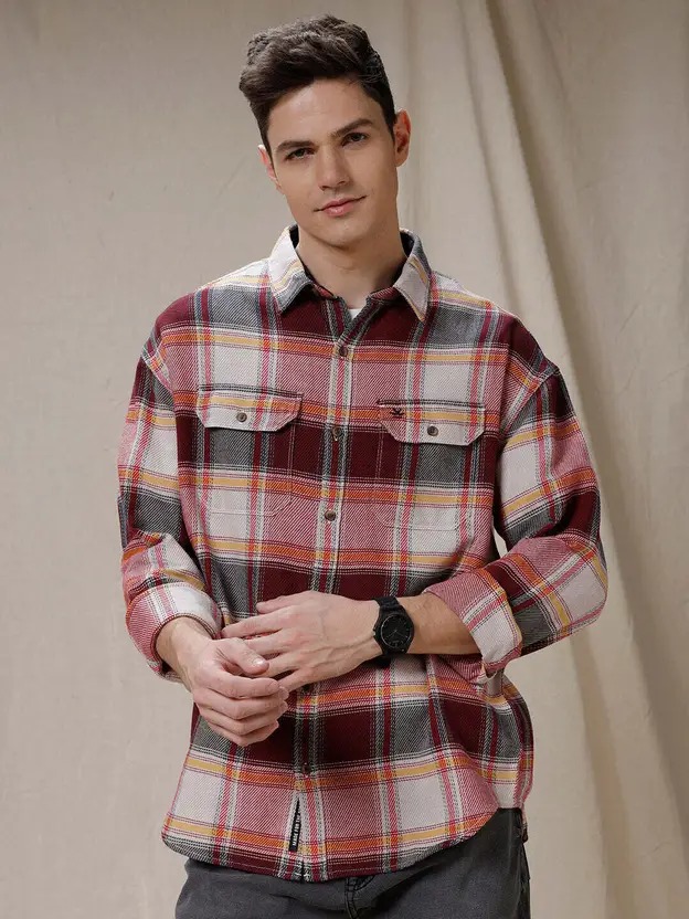Men Regular Fit Checkered Spread Collar Casual Shirt
