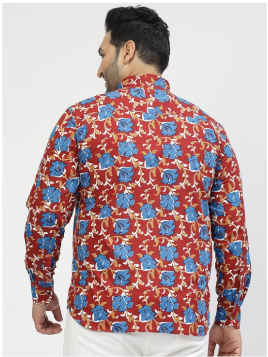 Maroon floral printed opaque Casual shirt ,has a spread collar, button placket, 1 patch pocket, long regular sleeves, curved hem