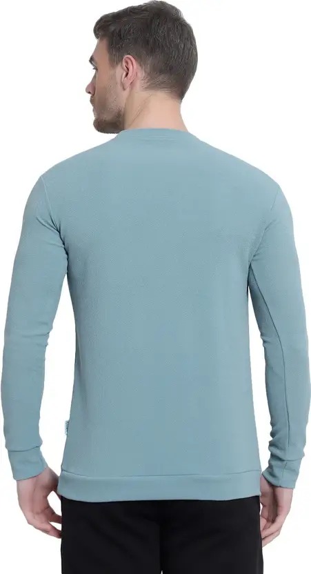 Men Solid Round Neck Polyester Light Blue T-Shirt