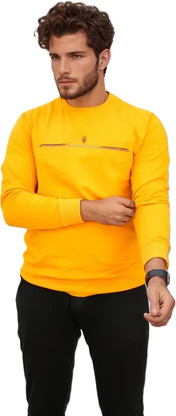 Men's Tshirt Men Printed, Typography Round Neck Cotton Blend Yellow T-Shirt