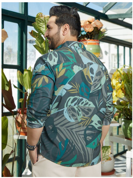 Green graphic printed opaque Casual shirt ,has a spread collar, button placket, na pocket, long regular sleeves, curved hem