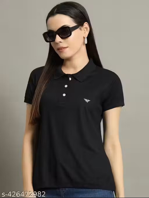Name : Women Solid Half Sleeves Polo Neck T-shirt