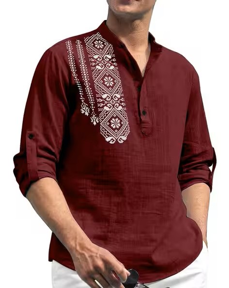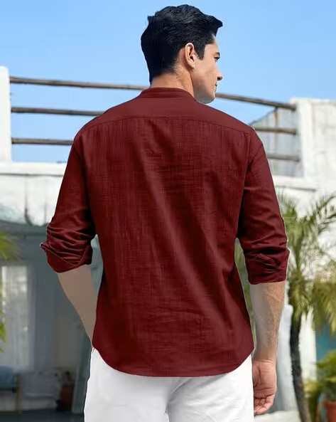 Men Regular Fit Short Kurta with Mandarin Collar
