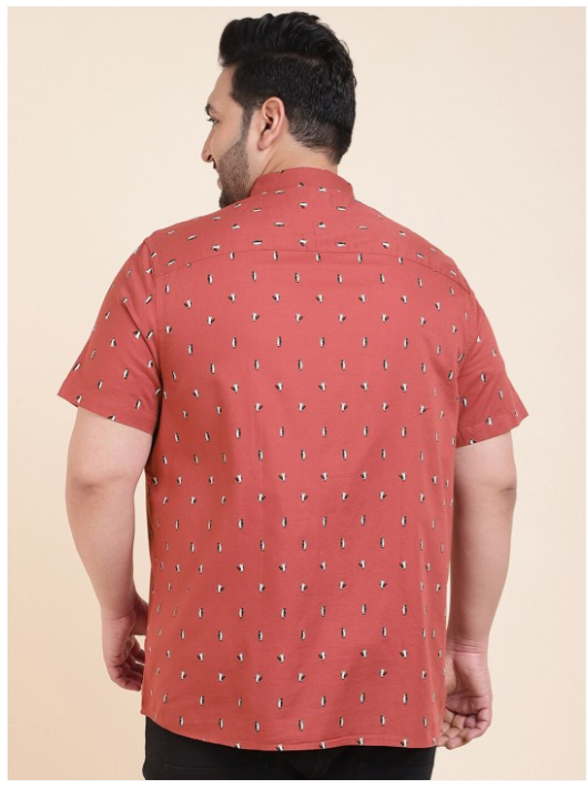 Rust conversational printed opaque Casual shirt ,has a spread collar, button placket, na pocket, short regular sleeves, curved hem