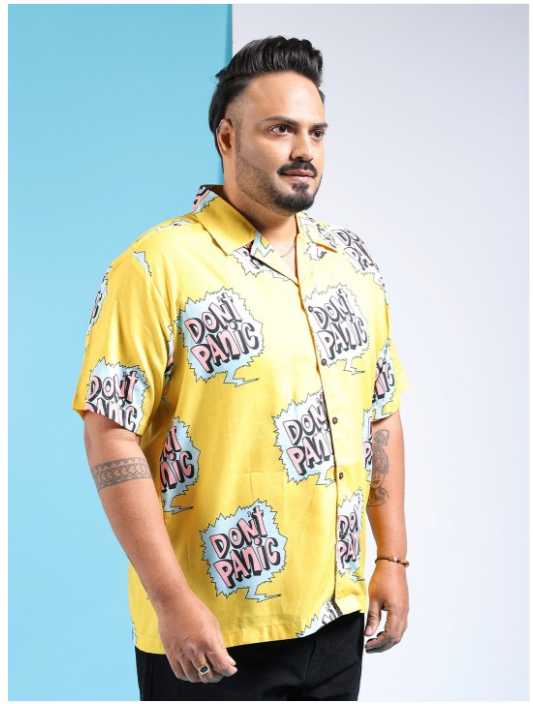 Yellow typography printed opaque casual shirt ,has a spread collar, button placket, short regular sleeves, curved hem