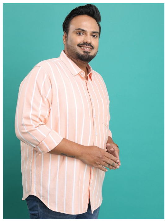 Peach-coloured vertical stripes striped opaque Casual shirt ,has a spread collar, button placket, 1 patch pocket, long regular sleeves, curved hem