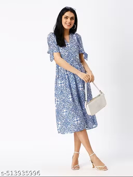 A V-neck mid dress with a front button placket is a stylish and versatile piece that features a V-shaped neckline. This design is both practical and fashionable, making it a great choice for everyday wear, work, or casual outings.