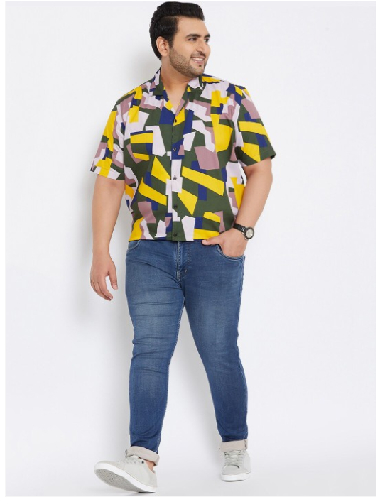 Multicoloured geometric printed opaque Casual shirt ,has a spread collar, button placket, short regular sleeves, curved hem