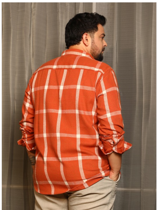Orange and white other checks checked opaque casual shirt ,has a spread collar, button placket, long regular sleeves, curved hem