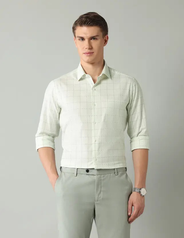 Men Slim Fit Checkered Cut Away Collar Formal Shirt