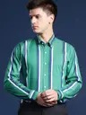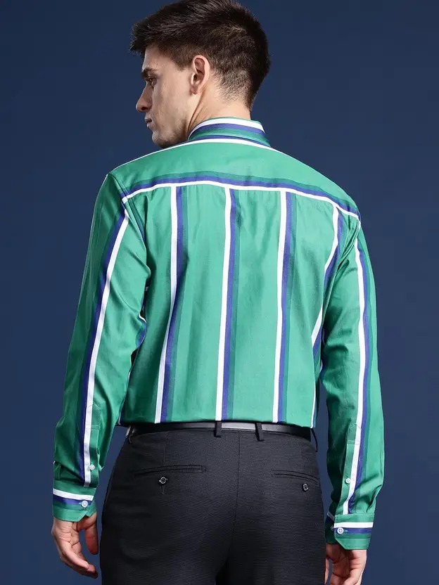 Men Slim Fit Striped Button Down Collar Formal Shirt