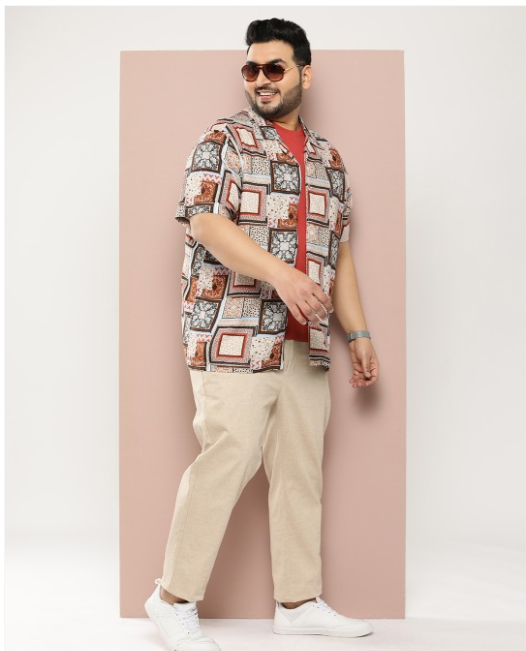 Multicoloured ethnic motifs printed opaque Casual shirt ,has a cuban collar, button placket, short regular sleeves, straight hem