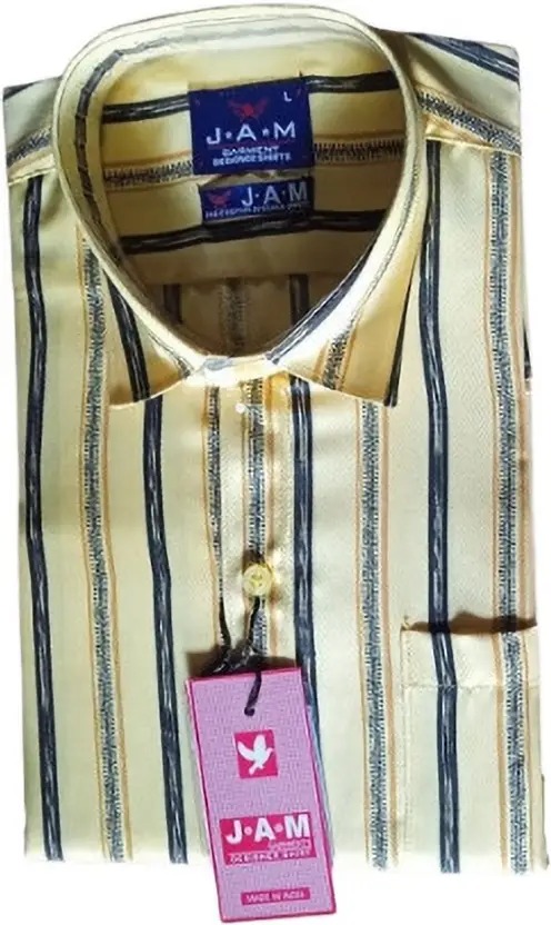 Men Regular Fit Striped Spread Collar Casual Shirt