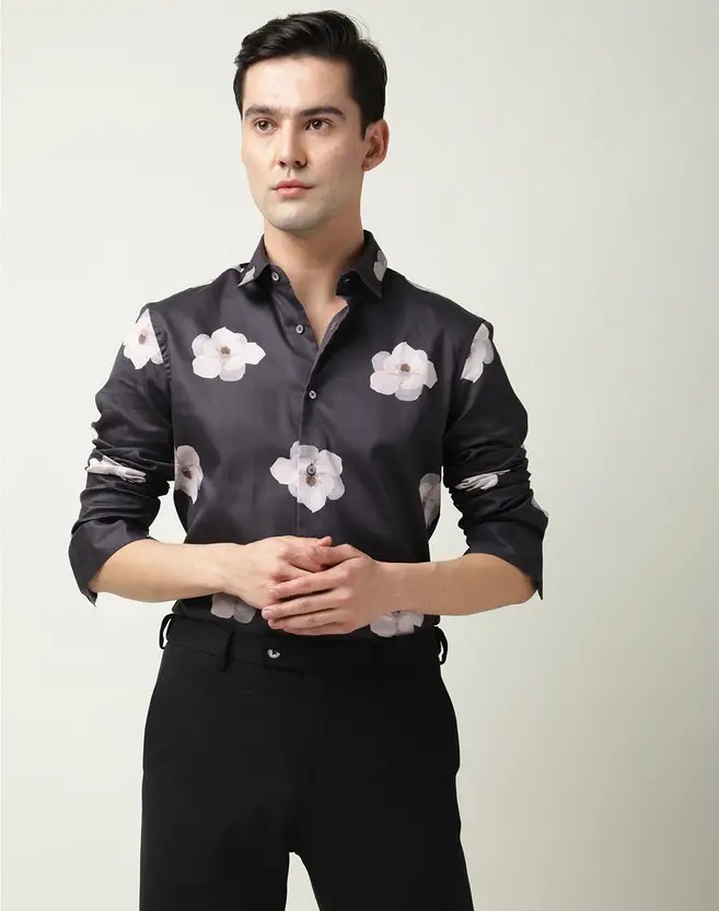 Men Slim Fit Printed Spread Collar Formal Shirt