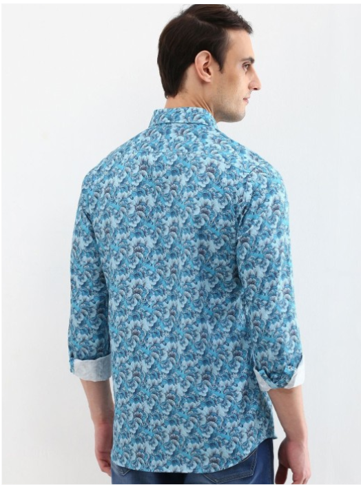 Blue floral printed opaque Casual shirt ,has a spread collar, button placket, 1 patch pocket, long regular sleeves, curved hem