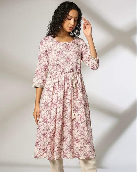 Women Floral Print Round-Neck A-Line Kurta