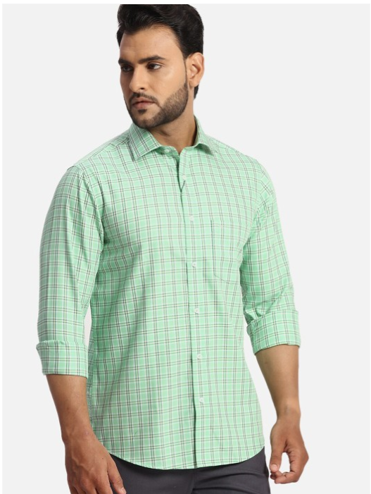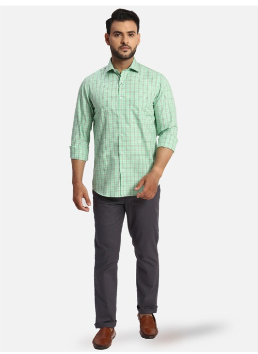 Green other checks checked opaque Casual shirt ,has a spread collar, button placket, na pocket, long regular sleeves, curved hem