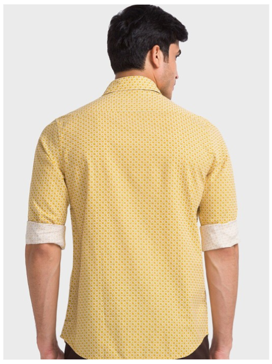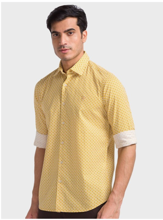 Yellow & white floral printed opaque casual shirt ,has a spread collar, button placket, long regular sleeves, curved hem