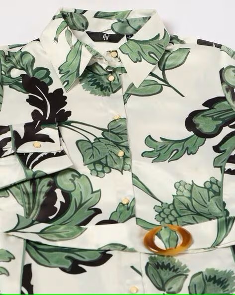 Women Floral Print Shirt Dress