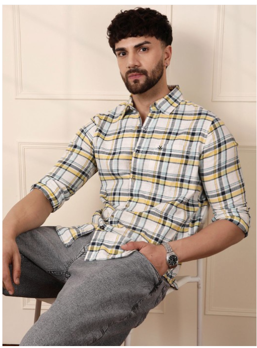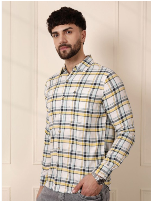 White, Yellow & Grey opaque casual shirt for men
