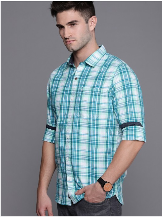 Teal blue and multicolour artan checks Casual shirt ,has a spread collar, button placket, 1 patch pocket, long regular sleeves, curved hem