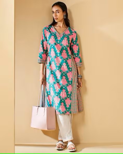 Women Floral Print Straight Kurti