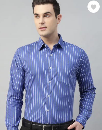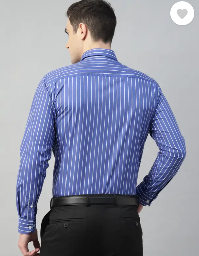Men Slim Fit Striped Spread Collar Formal Shirt