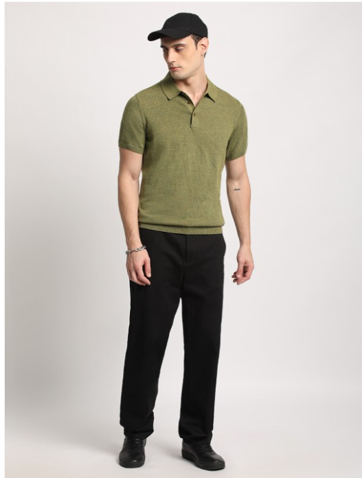 Men Solid Regular Fit Cotton Polo Collar T-Shirt
