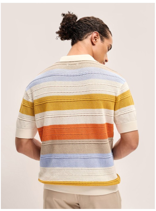 Self Design Relaxed Fit Polo Collar T-Shirt