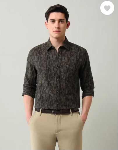 Men Slim Fit Printed Cut Away Collar Casual Shirt