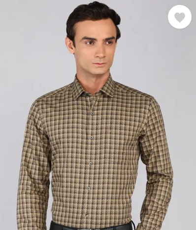 Men Slim Fit Checkered Cut Away Collar Formal Shirt