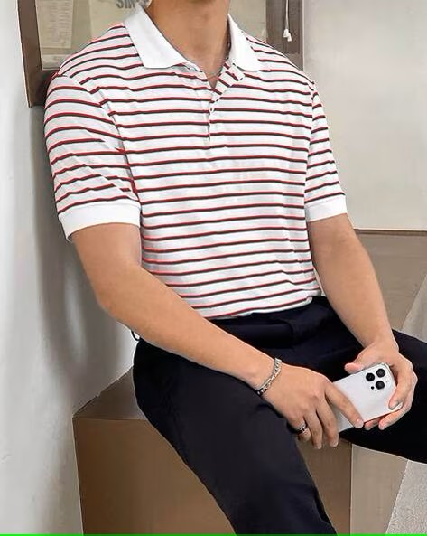 Men Striped Regular Fit Polo T-Shirt