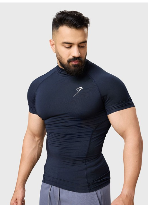 Men Stretchex High Neck Solid Compression T-shirt