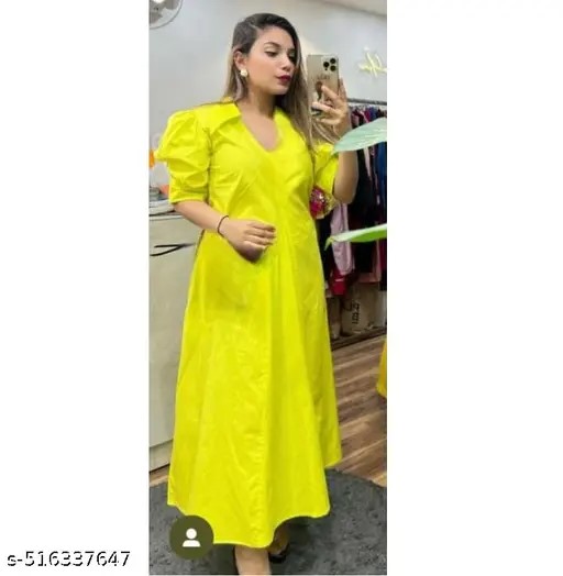 Name : New Design Women Fit and Flare Calf-Length Cotton Blend Puff Dress | dress party wear for women | dress for women | frock dikhao | women frocks party wear women frock dress long | women frock cotton