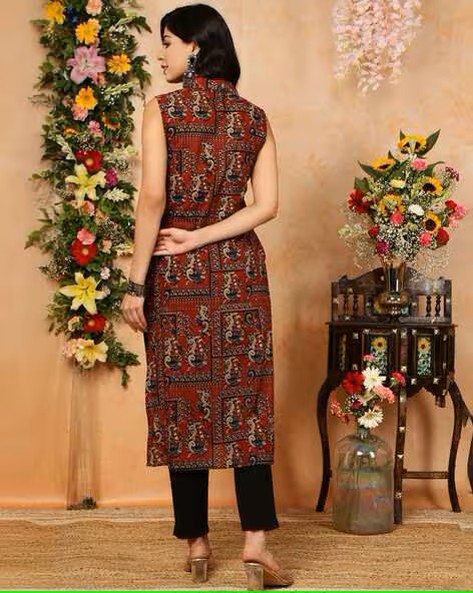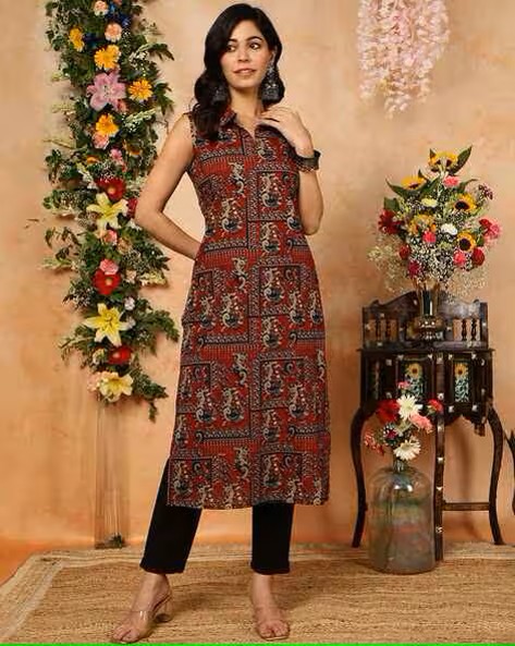 Printed Rayon Calf-Length Straight Shirt-Collar Kurta