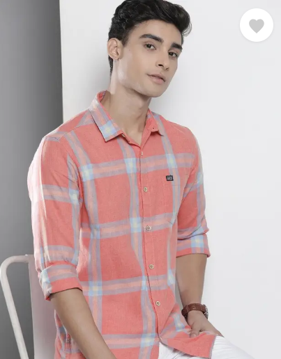 Men Slim Fit Checkered Spread Collar Casual Shirt