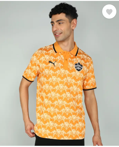 Men Printed Polo Neck Cotton Blend Orange T-Shirt