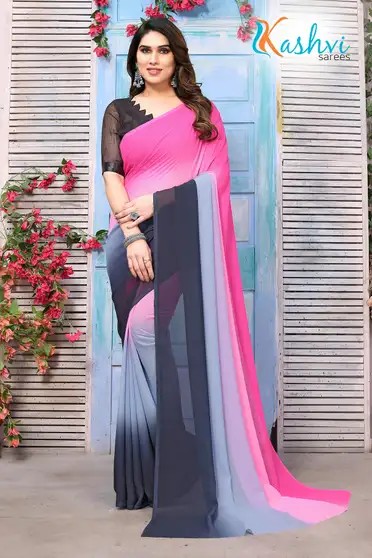 Ombre Padding & Shaded Daily Wear Fashion Georgette Made Saree Influenced by Alia Bhatt Saree from Bollywod Suitable For Daily & Casual Outings.This Saree Collection Comes With 5.25 Meters Of Length & Matching Fabric Un-Stitched Blouse Piece Having Length Of 0.75 Meters