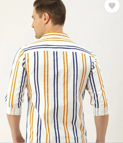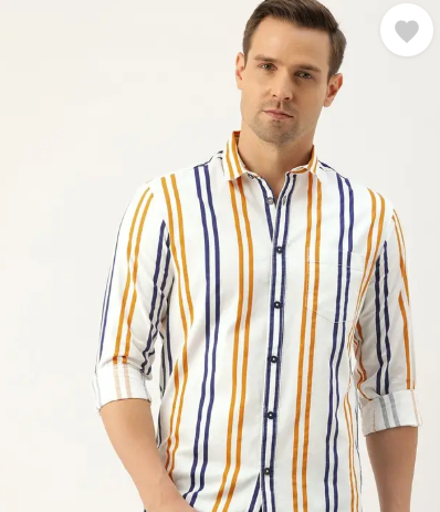 Men Slim Fit Striped Cut Away Collar Casual Shirt