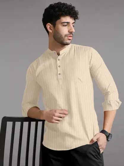Men Striped Kurta (Beige)