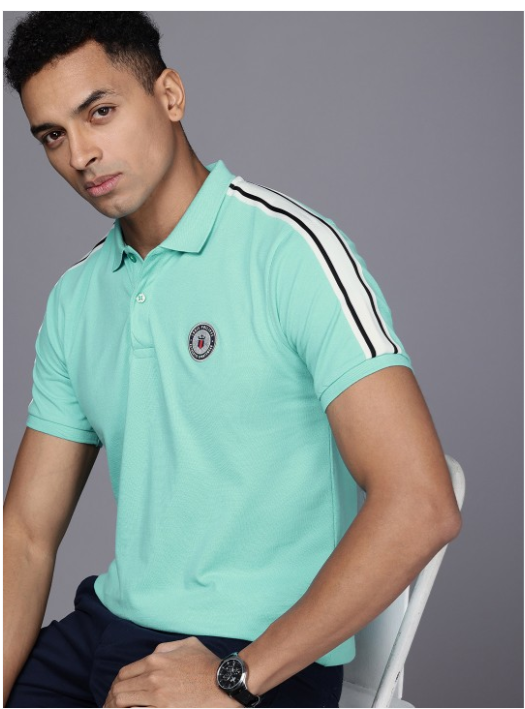 Colourblocked Polo Collar Pure Cotton Slim Fit T-shirt