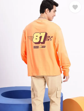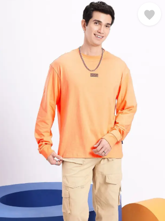 Men Printed Round Neck Pure Cotton Orange T-Shirt