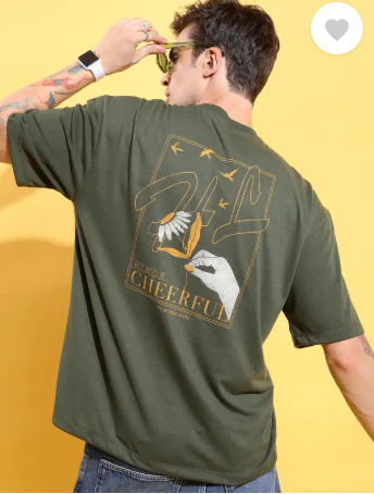 Men Printed, Typography Round Neck Cotton Blend Green T-Shirt
