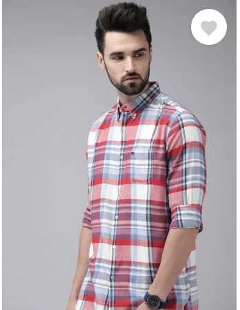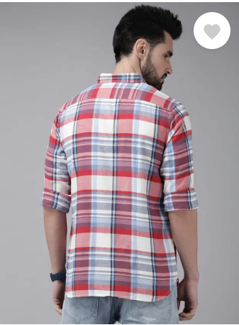 Men Slim Fit Checkered Button Down Collar Casual Shirt Special price