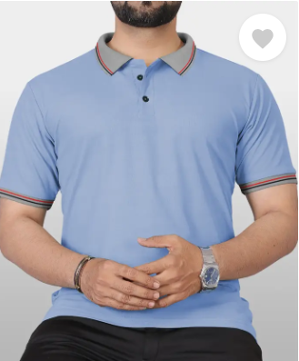 Men Solid Polo Neck Polyester Light Blue T-Shirt