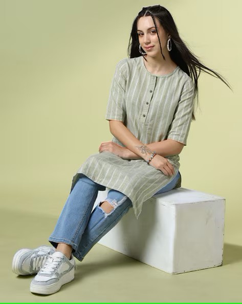 Women Striped Straight Kurta