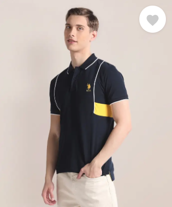 Men Colorblock Polo Neck Pure Cotton Blue T-Shirt
