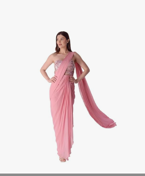 Women's Heavy Georgette Ready to Wear Saree Gown, Baby Pink