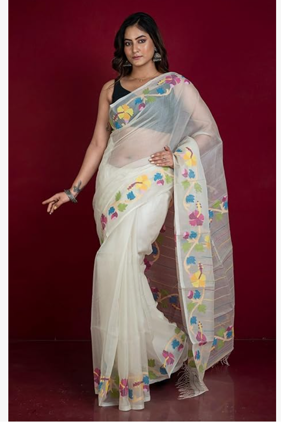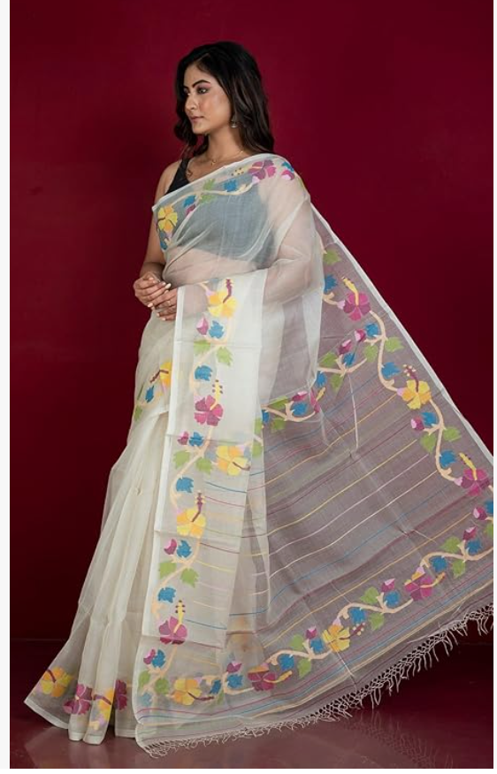 Minakari Woven Nakshi Work Silk Jamdani Saree with Blouse Piece