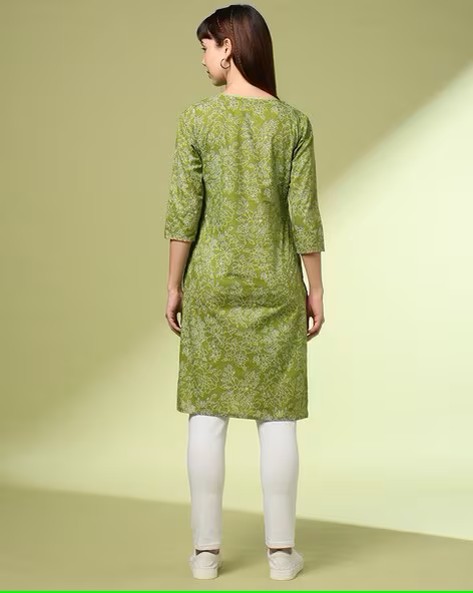 Women Floral Print Cambric Cotton Straight Kurta